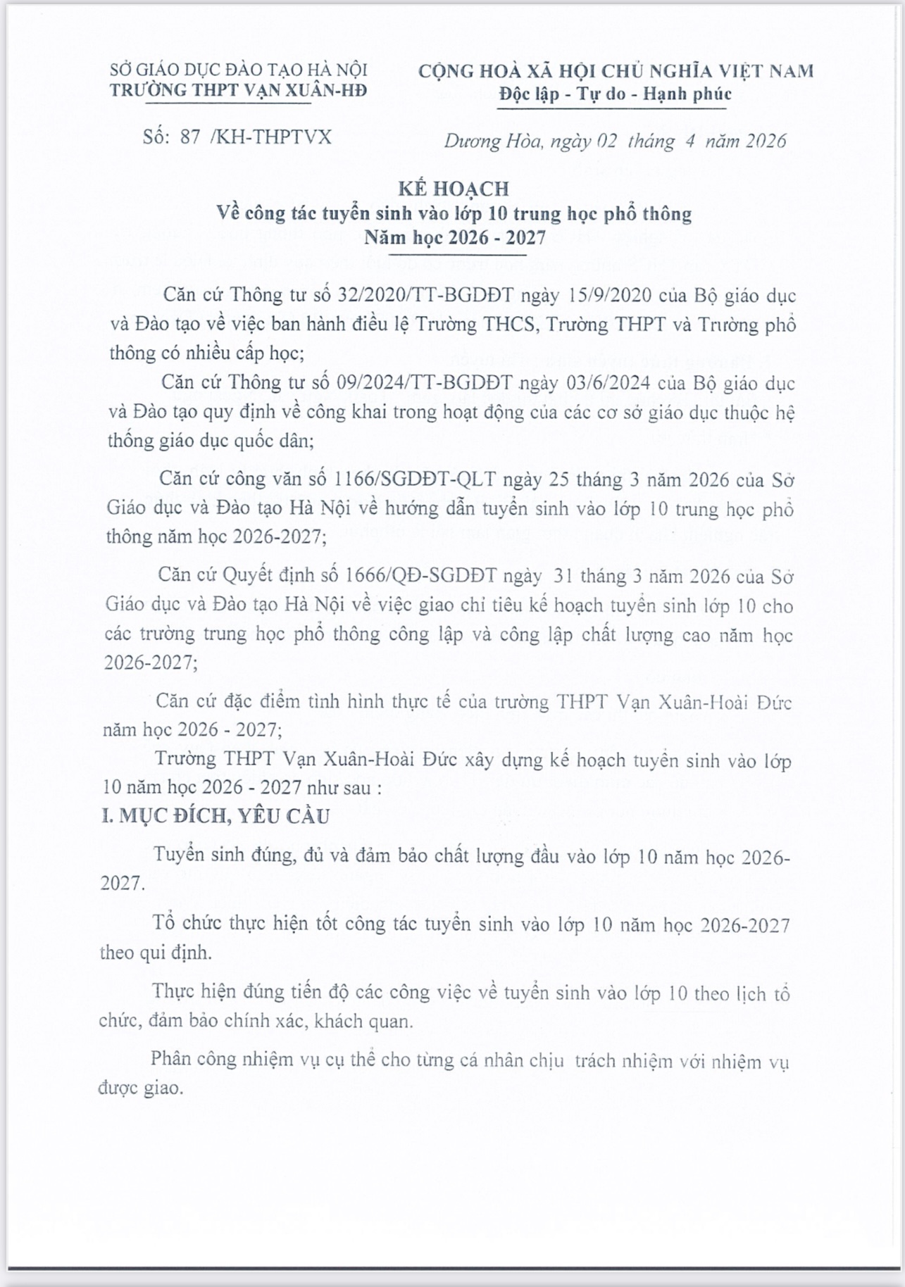 Sáng ngày 02/02/2026, Trường THPT Vạn Xuân – Hoài Đức đã long trọng tổ chức Mít tinh kỷ niệm 96 năm Ngày thành lập Đảng Cộng sản Việt Nam (03/02/1930 – 03/02/2026). Đây Xem thêm...