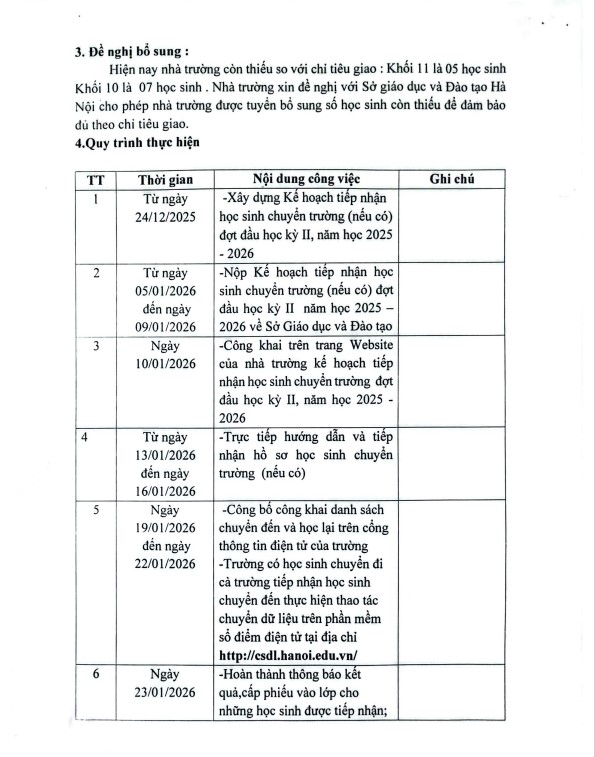 Căn cứ Công văn số 5293/SGDĐT-QLT ngày 15/12/2025 của Sở Giáo dục và Đào tạo về việc hướng dẫn công tác chuyển trường và tiếp nhận học sinh tại các trường trung học phô thông, chuyển trường và tuyển bổ sung vào lớp chuyên, lớp song bằng đầu học kỳ II năm học 2025 – 2026;