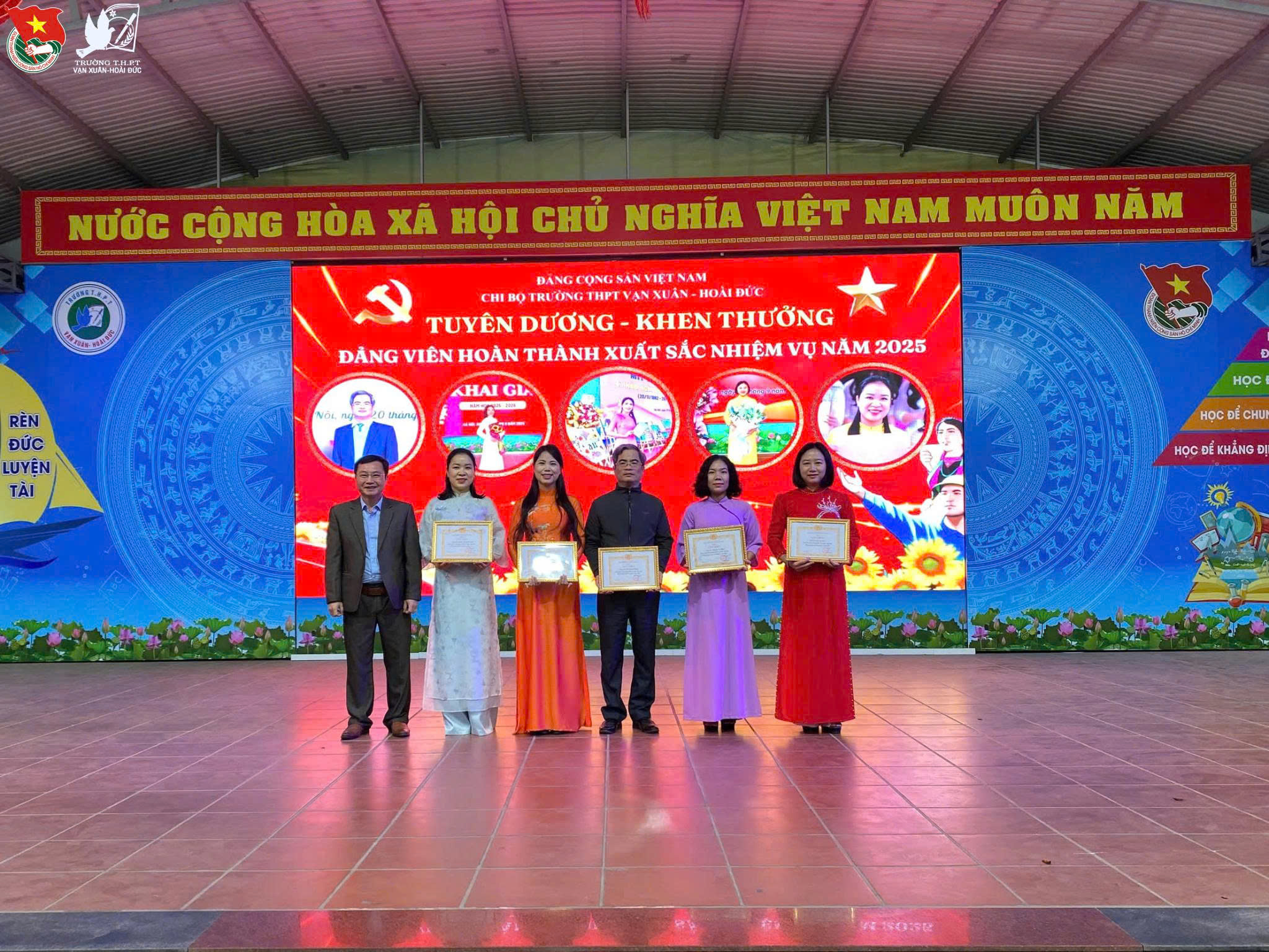 Nhân dịp này, nhà trường đã tổ chức biểu dương, khen thưởng các đảng viên hoàn thành xuất sắc nhiệm vụ năm 2025, qua đó khích lệ tinh thần trách nhiệm, ý thức nêu gương và vai trò tiên phong của đội ngũ đảng viên trong mọi hoạt động của nhà trường.