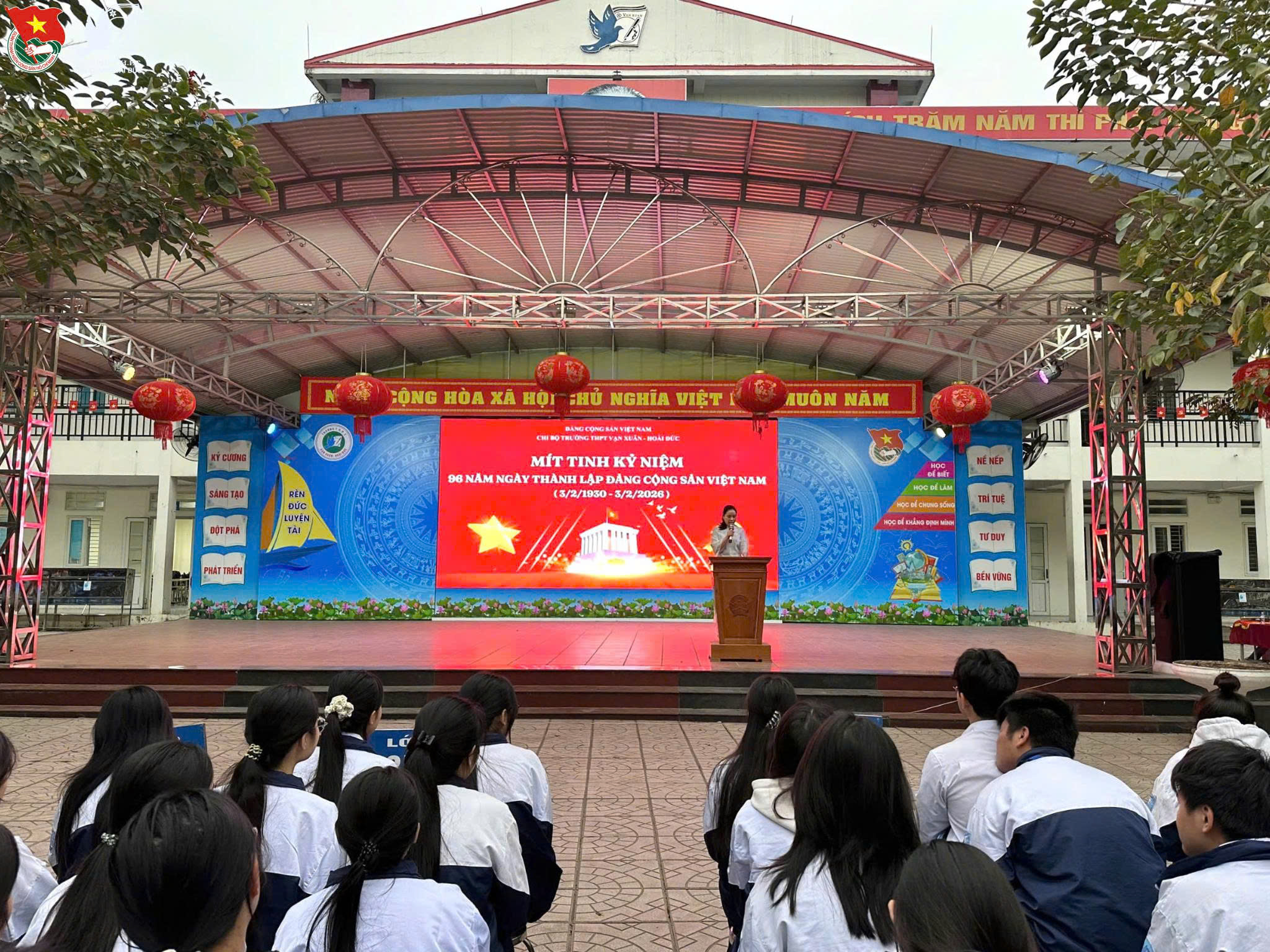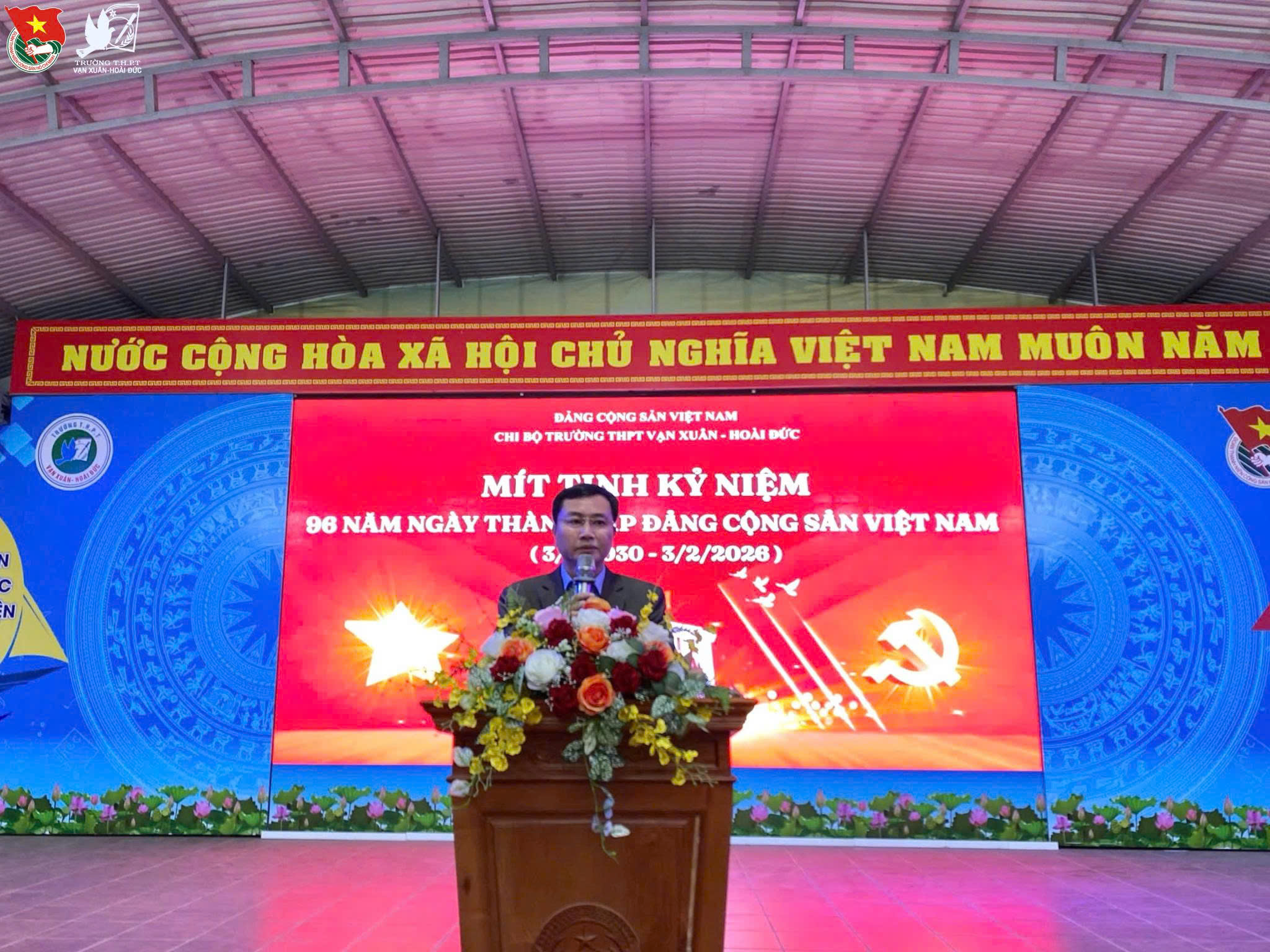 Sáng ngày 02/02/2026, Trường THPT Vạn Xuân – Hoài Đức đã long trọng tổ chức Mít tinh kỷ niệm 96 năm Ngày thành lập Đảng Cộng sản Việt Nam (03/02/1930 – 03/02/2026). Đây là dịp để cán bộ, giáo viên và học sinh toàn trường cùng ôn lại những chặng đường lịch sử vẻ vang của Đảng, qua đó bồi dưỡng niềm tự hào dân tộc, củng cố niềm tin vào lý tưởng cách mạng và con đường đi lên chủ nghĩa xã hội của đất nước. Tham dự buổi lễ có các đồng chí trong Chi bộ Đảng, Ban Giám hiệu nhà trường, các thầy cô giáo trong Hội đồng sư phạm cùng toàn thể cán bộ, nhân viên và học sinh toàn trường.