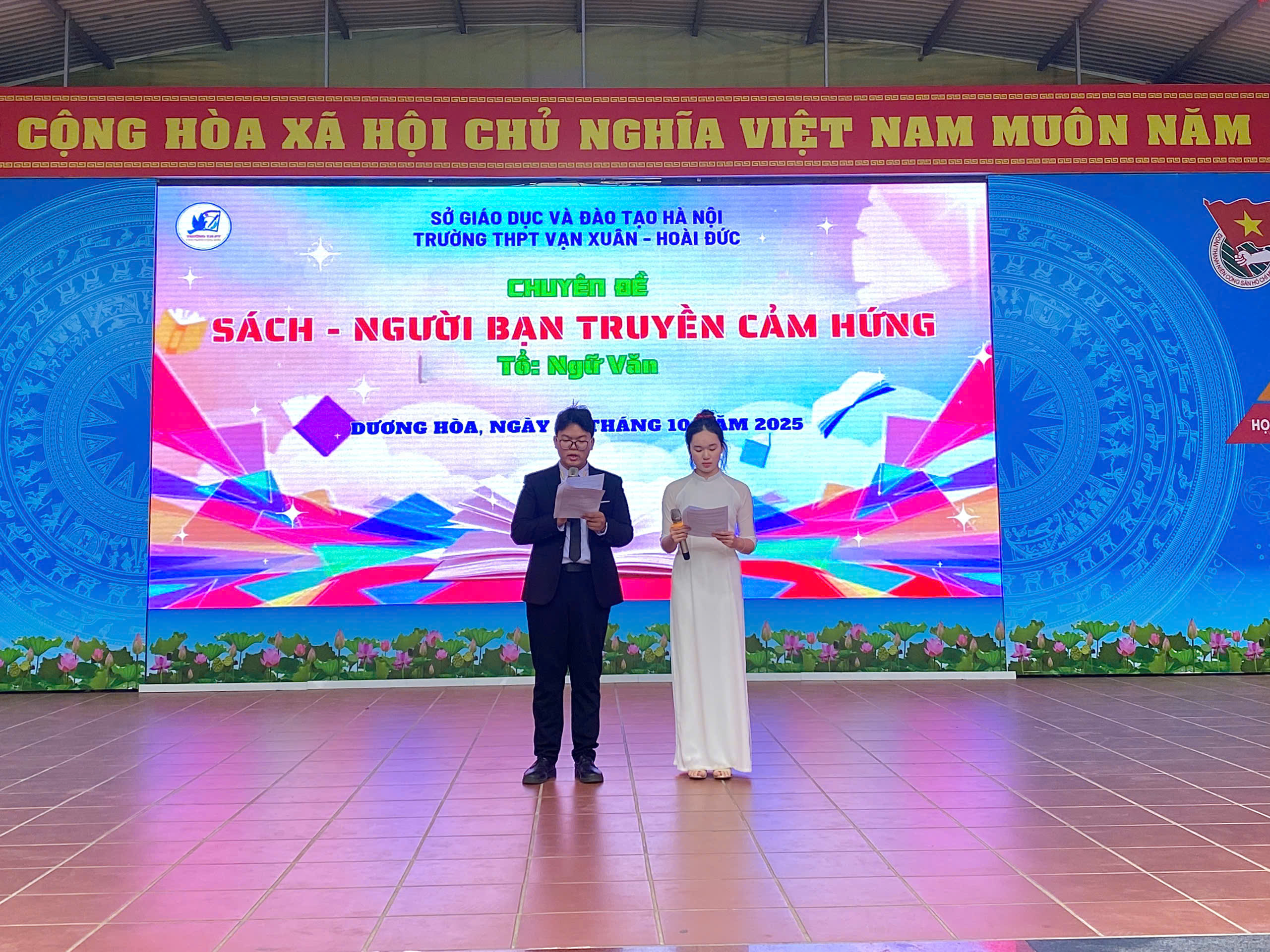 Ngày 27/10/2025, Tổ Ngữ văn Trường THPT Vạn Xuân – Hoài Đức tổ chức chuyên đề “Sách – Người bạn truyền cảm hứng”, nhằm lan tỏa niềm yêu đọc sách và khơi dậy tinh thần sáng tạo, học hỏi trong học sinh toàn trường.