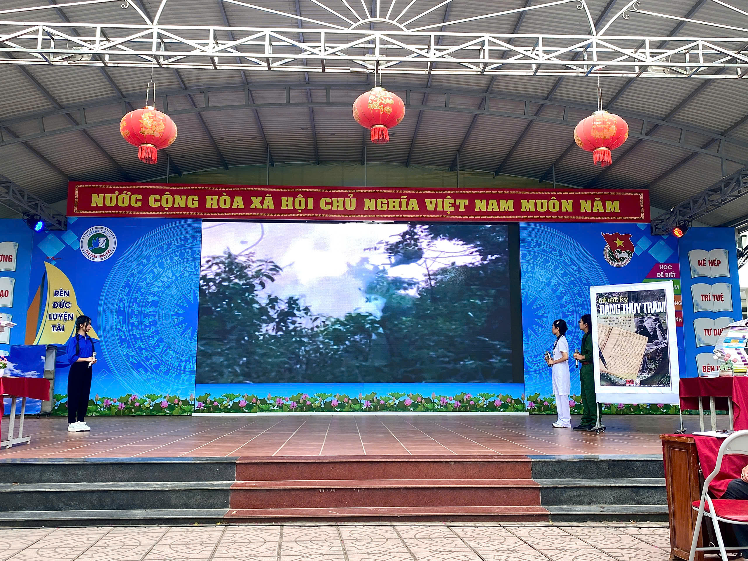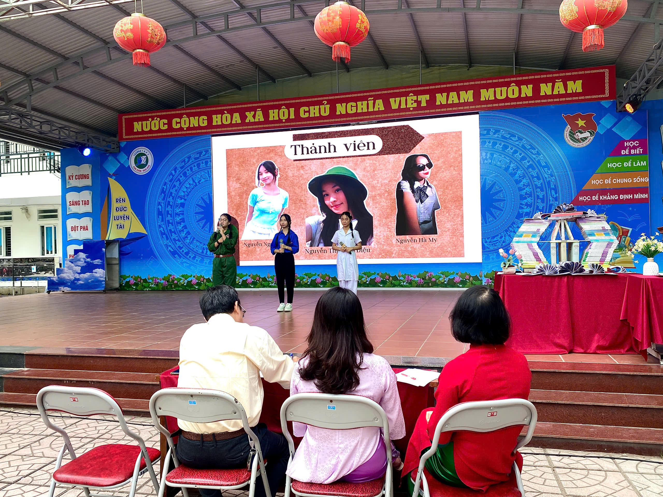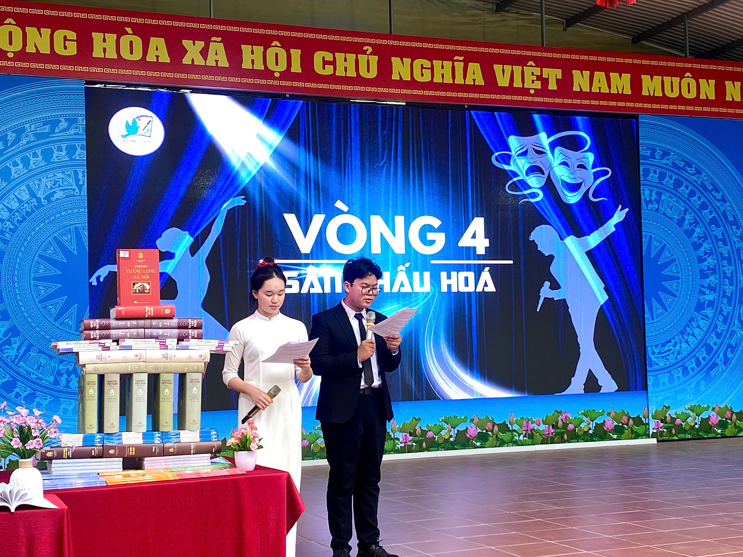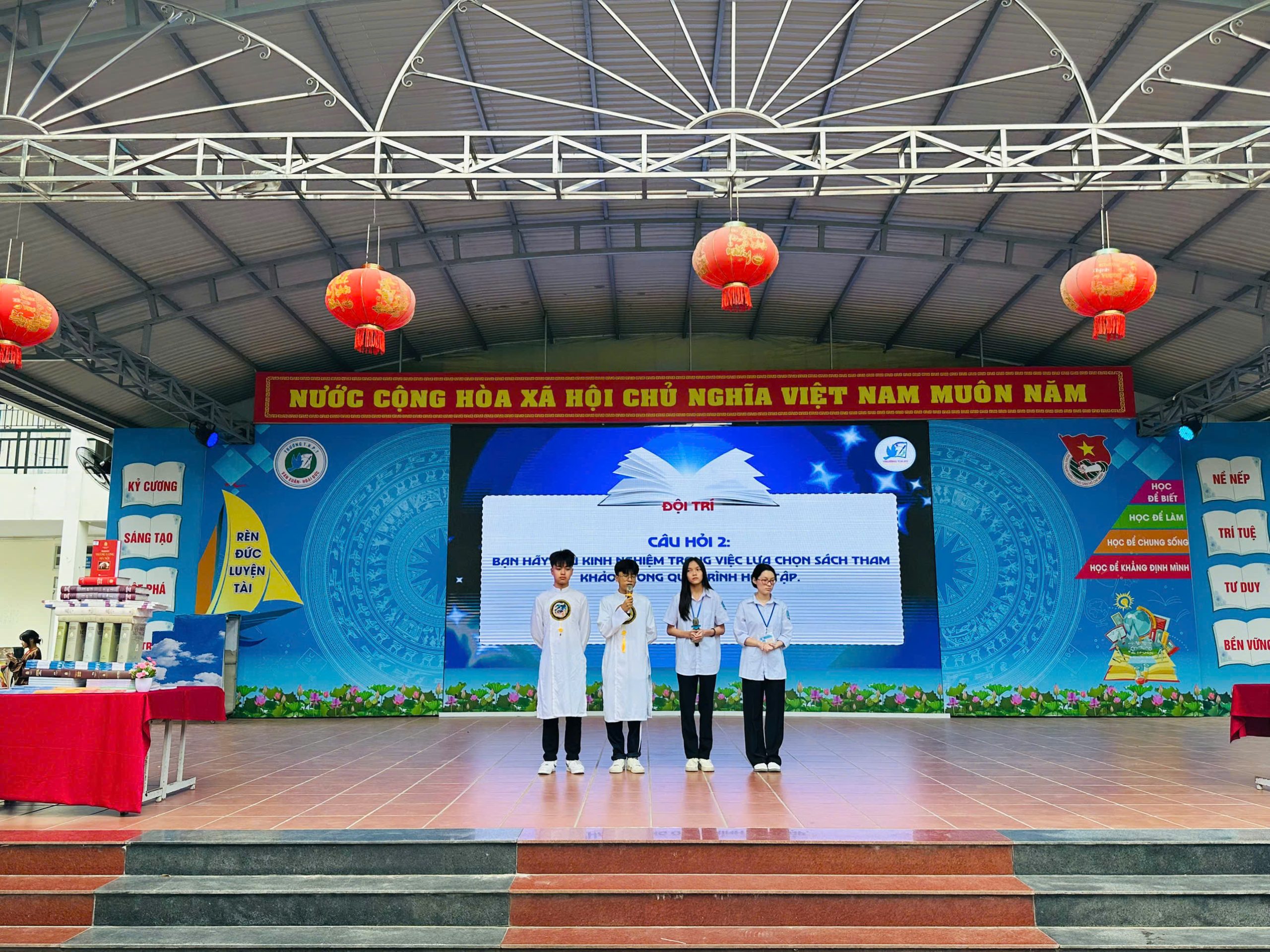 🌟 Mỗi phần thi trong chương trình là một sân khấu thu nhỏ của sáng tạo và tri thức. Các đội thi đã thể hiện bản lĩnh của mình qua: Màn chào hỏi ấn tượng, giàu tính nghệ thuật; Phần giới thiệu sách sâu sắc, gửi gắm thông điệp ý nghĩa; Vòng thi hiểu biết, nơi tri thức được lan tỏa và kết nối. Đặc biệt, phần thi sân khấu hóa đã trở thành điểm nhấn rực rỡ của chương trình. Dưới bàn tay sáng tạo của học sinh, những trang sách tĩnh lặng bỗng “sống dậy” bằng âm nhạc, ánh sáng và lời thoại đầy cảm xúc. Các em đã hóa thân vào nhân vật, đưa khán giả hòa mình vào thế giới của cảm xúc và tri thức – nơi sách được cảm, được sống và được lan tỏa.