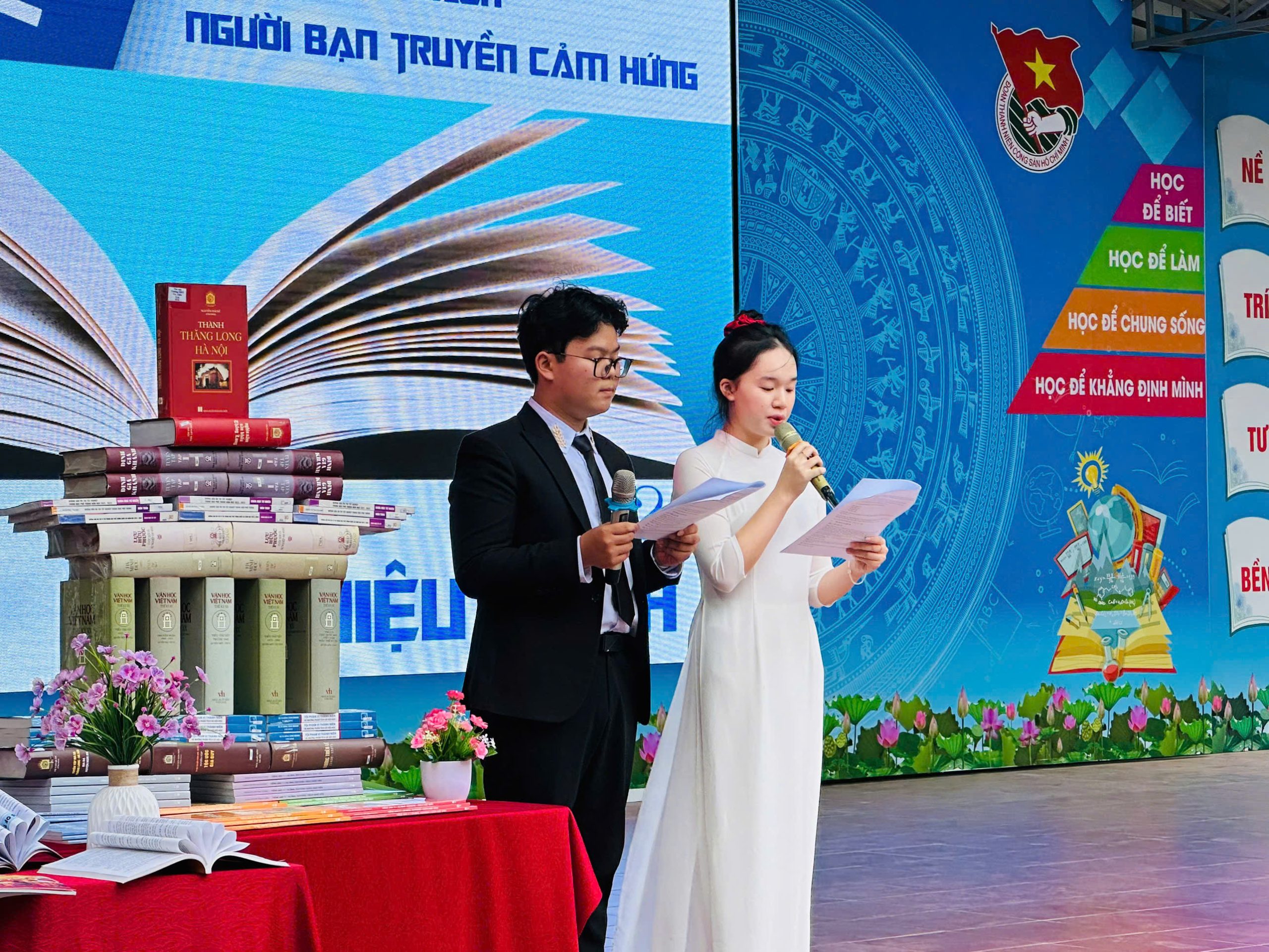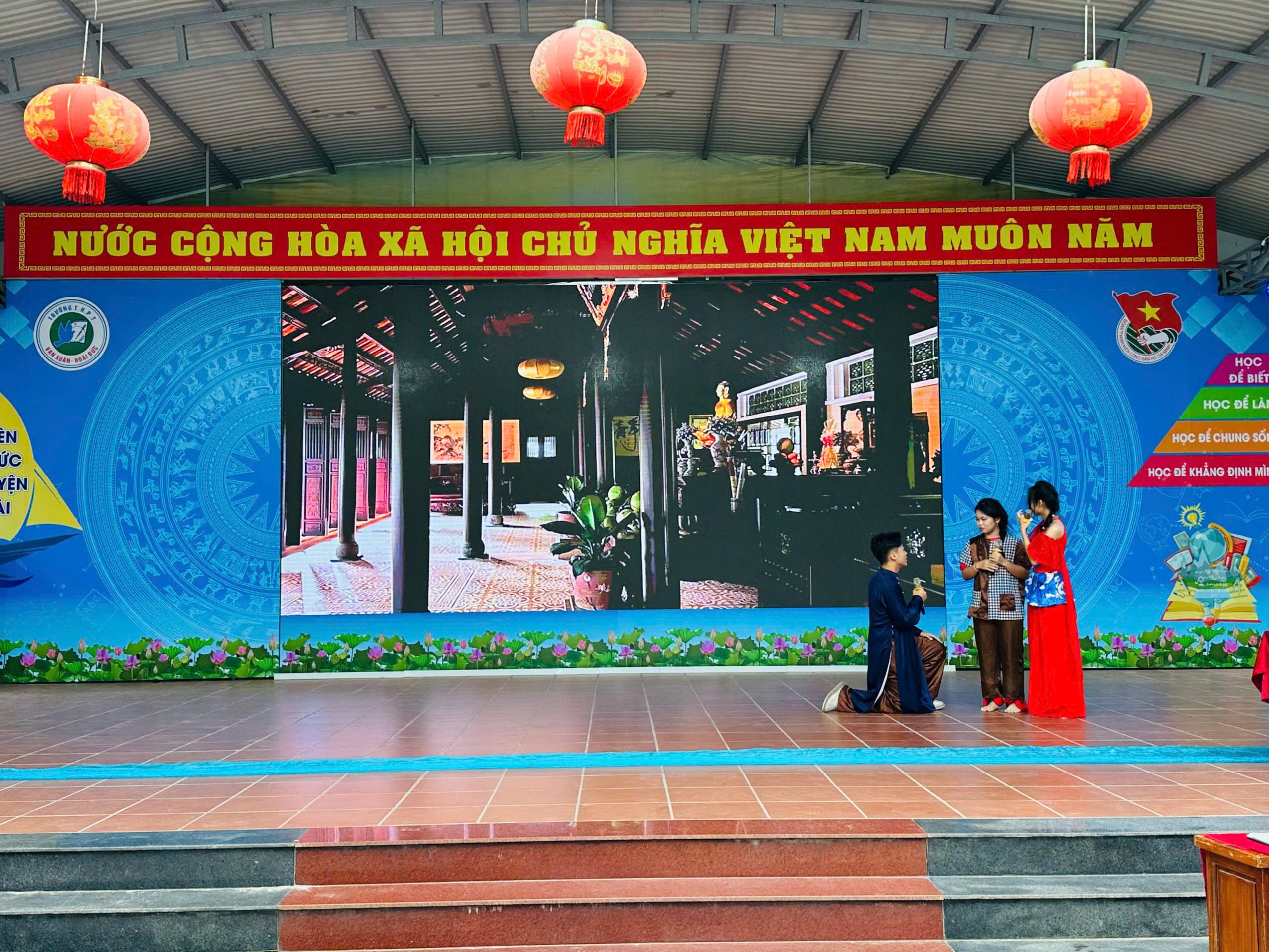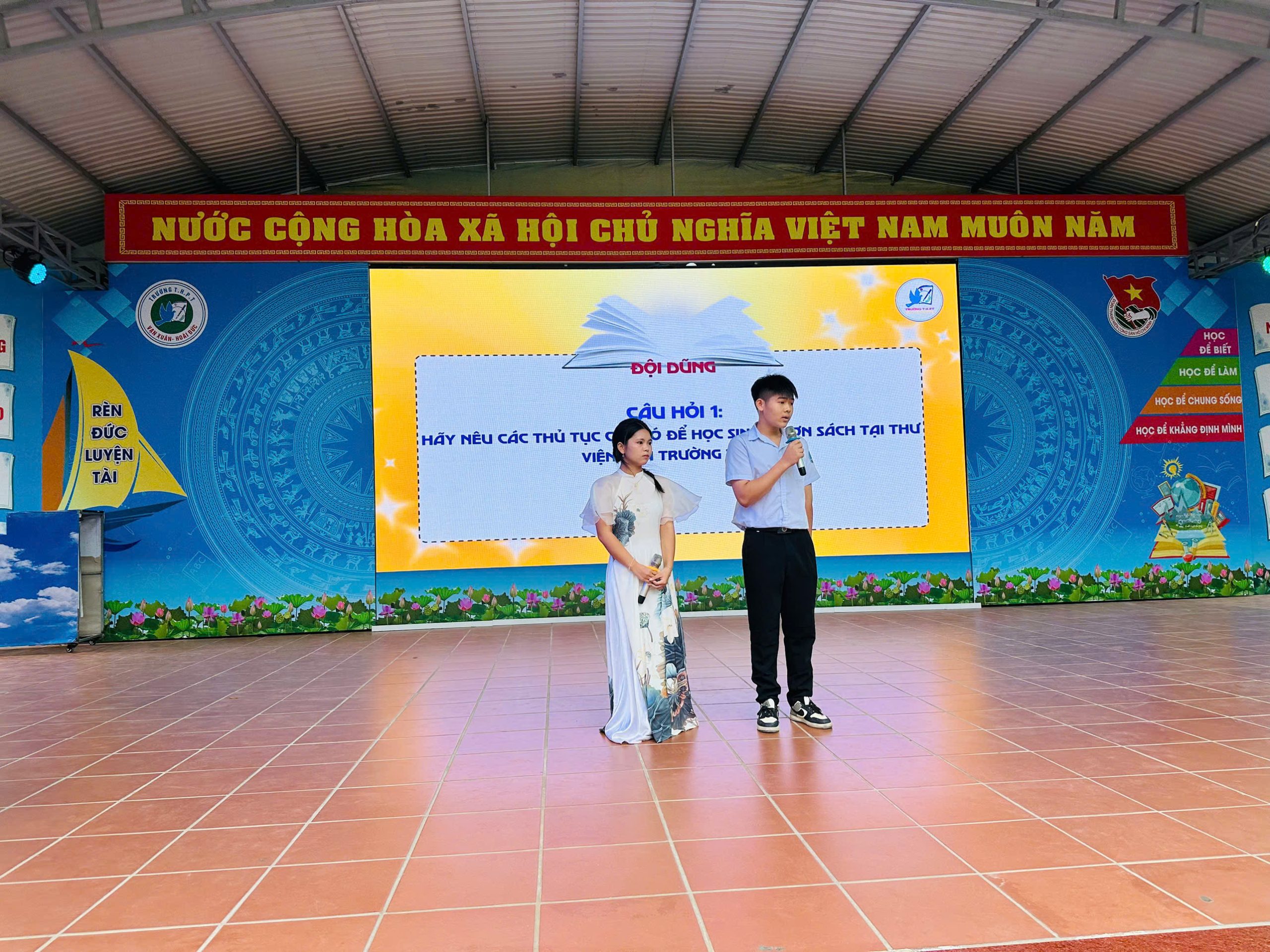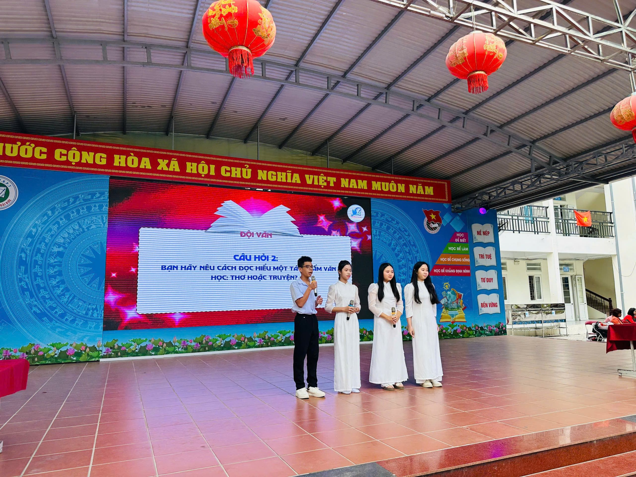 🌟 Mỗi phần thi trong chương trình là một sân khấu thu nhỏ của sáng tạo và tri thức. Các đội thi đã thể hiện bản lĩnh của mình qua: Màn chào hỏi ấn tượng, giàu tính nghệ thuật; Phần giới thiệu sách sâu sắc, gửi gắm thông điệp ý nghĩa; Vòng thi hiểu biết, nơi tri thức được lan tỏa và kết nối. Đặc biệt, phần thi sân khấu hóa đã trở thành điểm nhấn rực rỡ của chương trình. Dưới bàn tay sáng tạo của học sinh, những trang sách tĩnh lặng bỗng “sống dậy” bằng âm nhạc, ánh sáng và lời thoại đầy cảm xúc. Các em đã hóa thân vào nhân vật, đưa khán giả hòa mình vào thế giới của cảm xúc và tri thức – nơi sách được cảm, được sống và được lan tỏa.