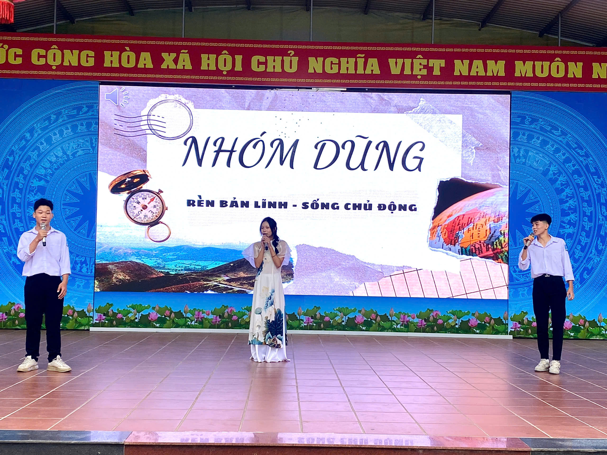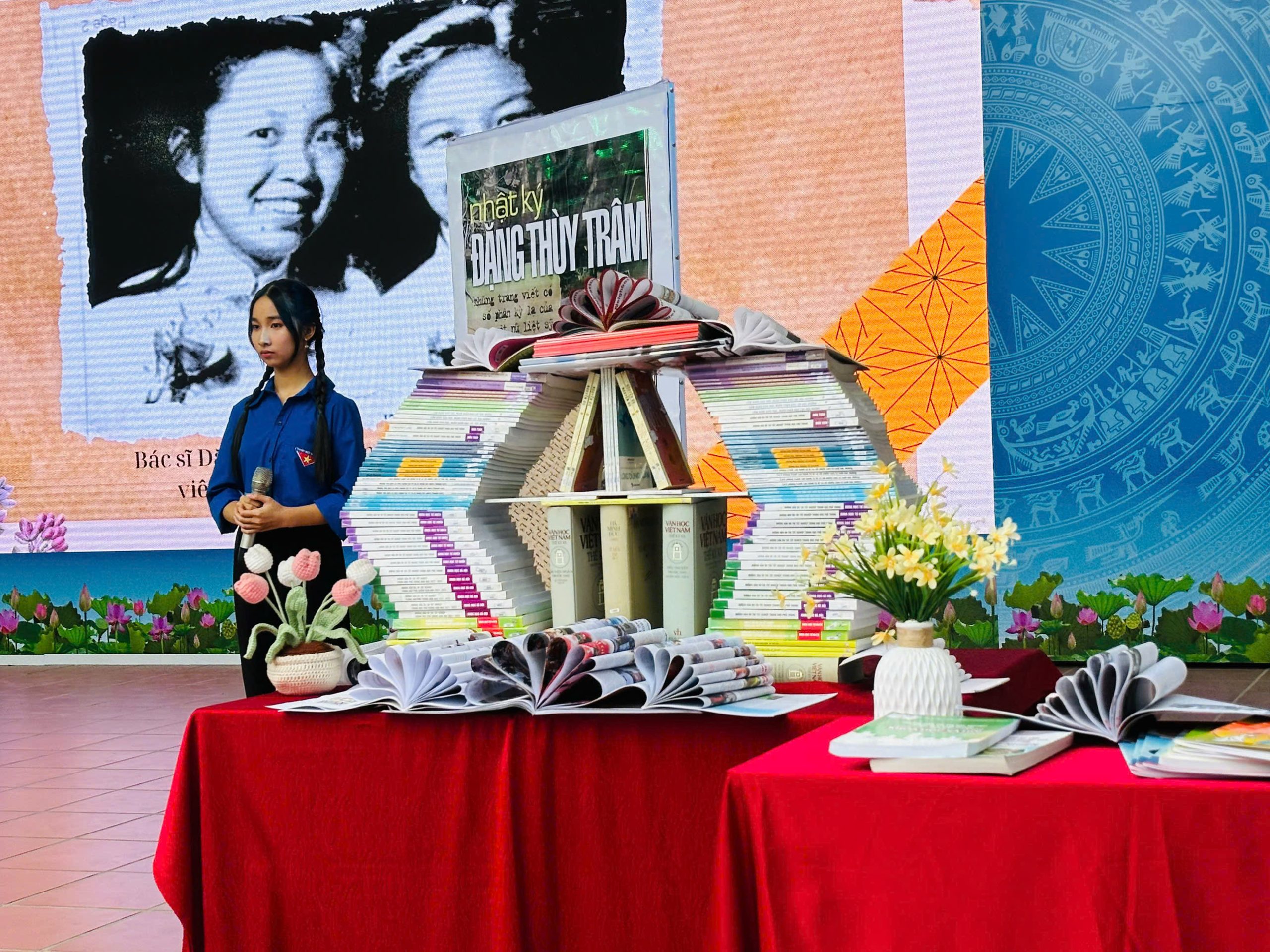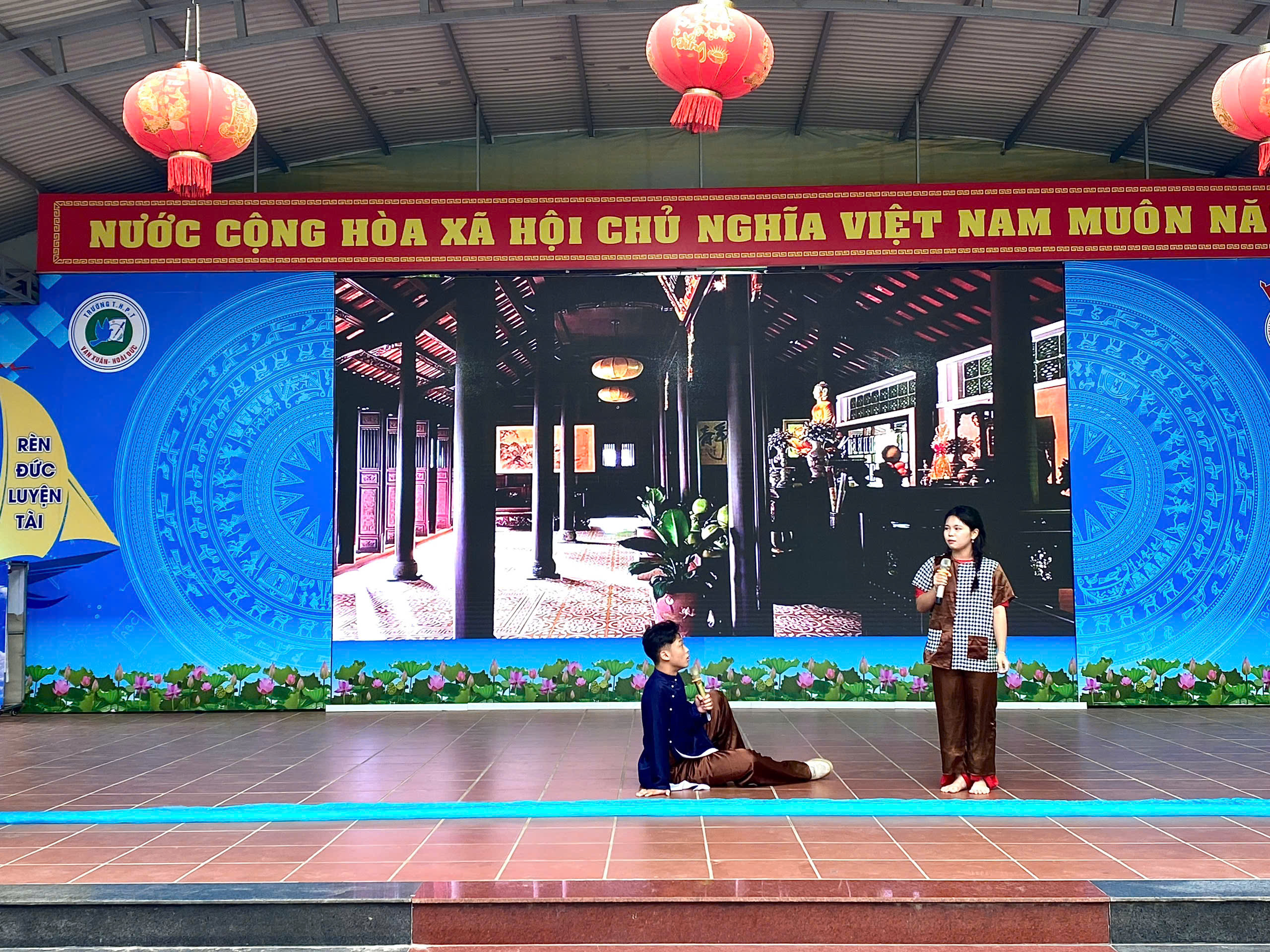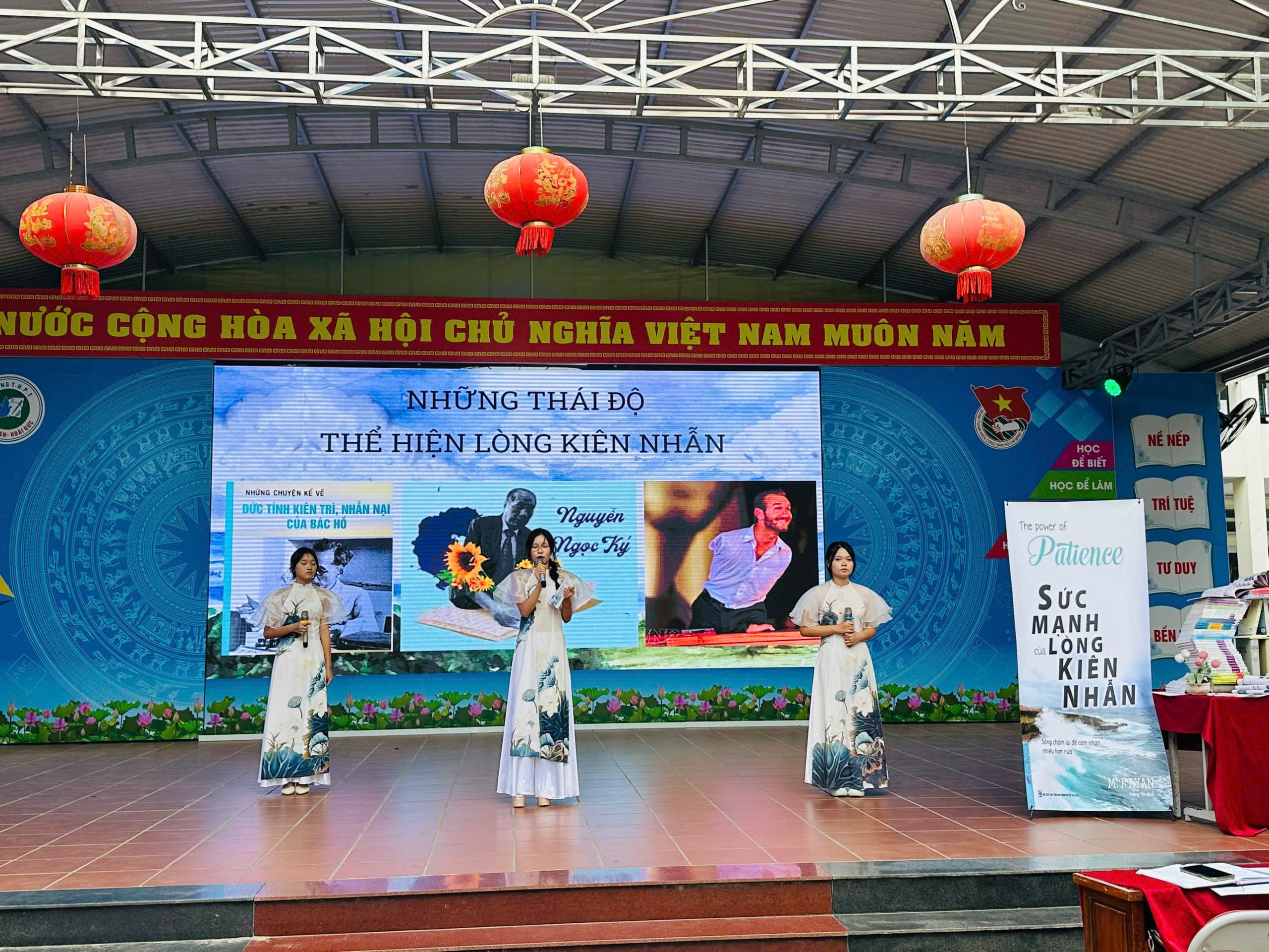 🌟 Mỗi phần thi trong chương trình là một sân khấu thu nhỏ của sáng tạo và tri thức. Các đội thi đã thể hiện bản lĩnh của mình qua: Màn chào hỏi ấn tượng, giàu tính nghệ thuật; Phần giới thiệu sách sâu sắc, gửi gắm thông điệp ý nghĩa; Vòng thi hiểu biết, nơi tri thức được lan tỏa và kết nối. Đặc biệt, phần thi sân khấu hóa đã trở thành điểm nhấn rực rỡ của chương trình. Dưới bàn tay sáng tạo của học sinh, những trang sách tĩnh lặng bỗng “sống dậy” bằng âm nhạc, ánh sáng và lời thoại đầy cảm xúc. Các em đã hóa thân vào nhân vật, đưa khán giả hòa mình vào thế giới của cảm xúc và tri thức – nơi sách được cảm, được sống và được lan tỏa.